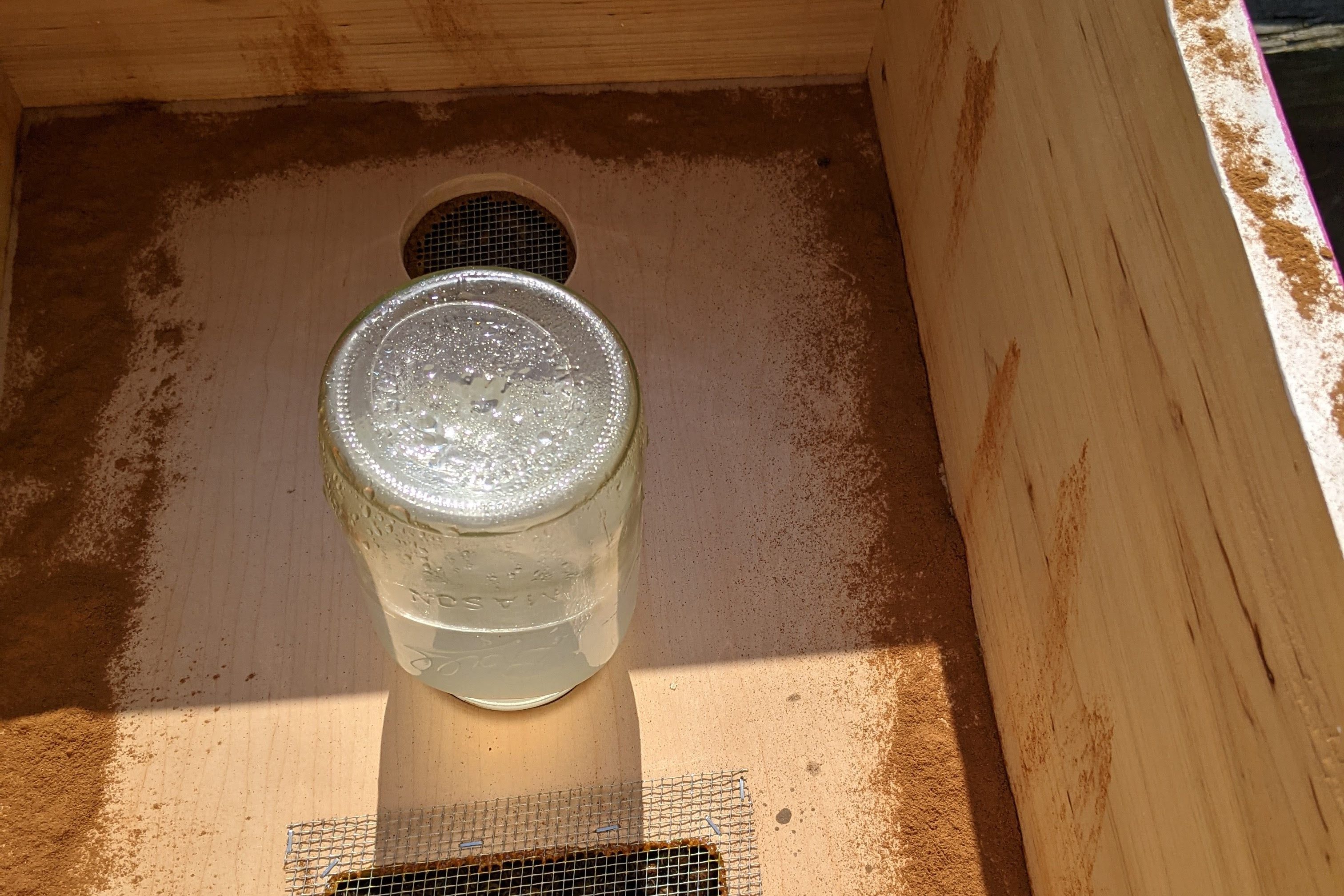 I’ve noted that they have settled into a mason jar ever 2-3 days as the summer has gone on and we are now in the dearth. I am still feeding a 1:1 ratio, but pretty soon I will need to switch to a 2:1 to help the fall girls put their winter weight on. (when you see honey costing 10-12 dollars a pound, this is a major reason behind it. It costs money to make money!)