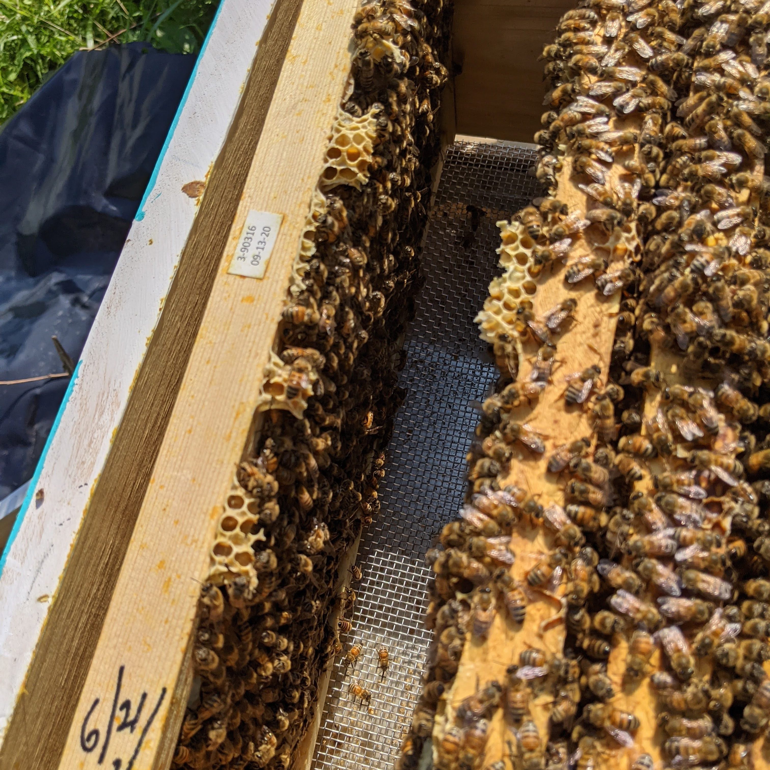 My reason was to look at the laying pattern on the frames, I didn’t see solid half moons (you can think of a frame as having 3 segments where there are brood or larva in one, with an outer ring of nectar/bee bread/pollen, and a final ring of honey stores.) This is a microcosm of what those bees on that frame need to be successful. -I kind of saw this on most of my frames, but not as much as I would have liked. So I decided to roll my dice and ‘go big or go home’ as it were. (words that may very well come back to bite me come January. We shall see.